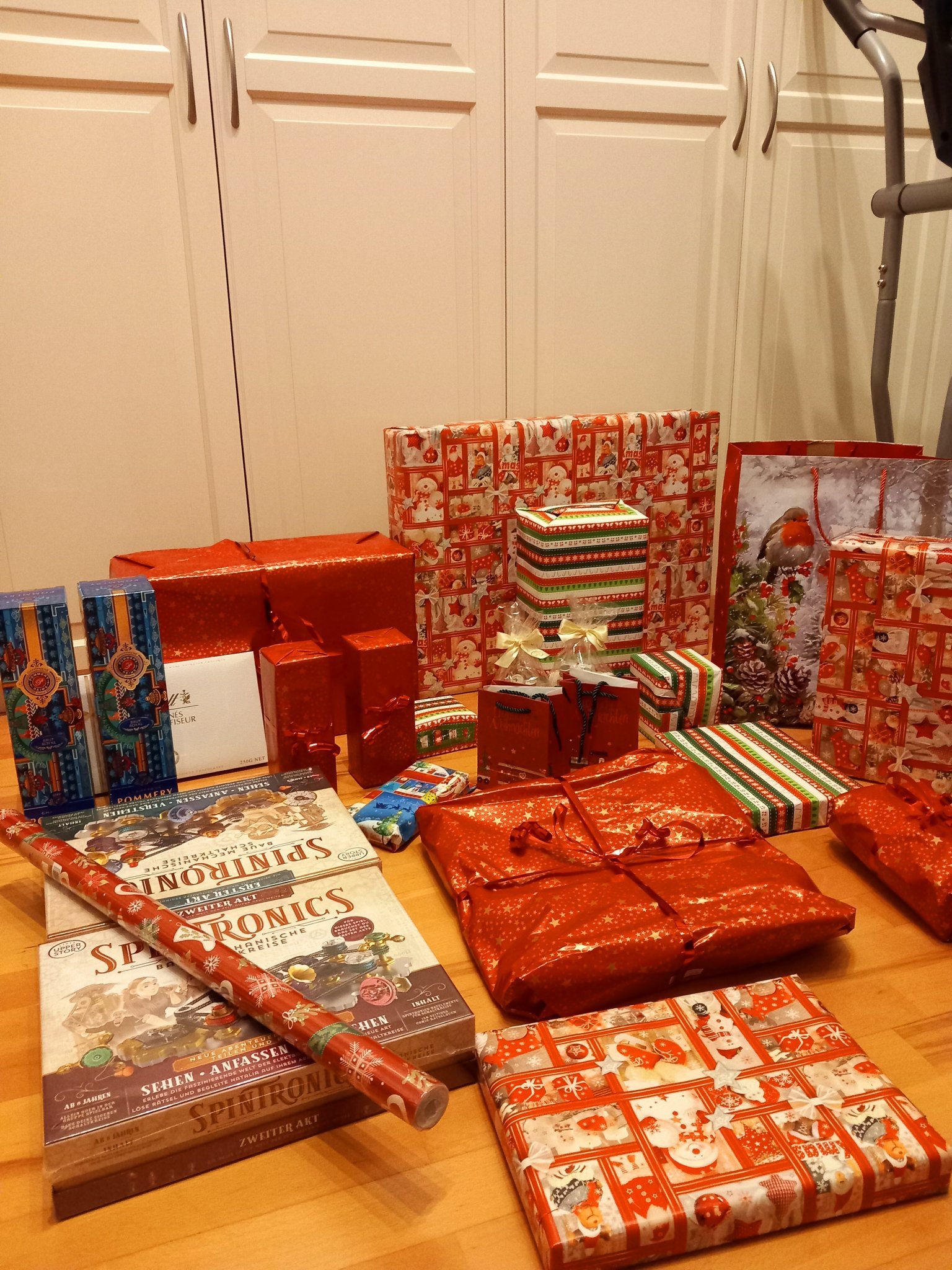 И аз да се отчета с готовите подаръци. За дъщеря ми на 12 -маратонки и калъф за телефона. От бабите  козметика на Ла Рош. За сина ми на 2 и половина 2 Лего Дупло и писта хот уилс, книжки от поредицата "Защо, какво, как" ( това са от всички). За племенника на 11 - ретро игра, подобна на Нинтендо от едно време. За брат ми и сестра му - бурканчета с подправки. За свекър ми - самобръсначка Жилет, за майка ми и свекърва ми - органайзери за чанта и едни шишеннца за парфюм 10мл да си напълнят от любимия парфюм за чантата. Остава ми бабата на ММ - на нея мисля кутии за съхранение на храна от ИКЕА.
