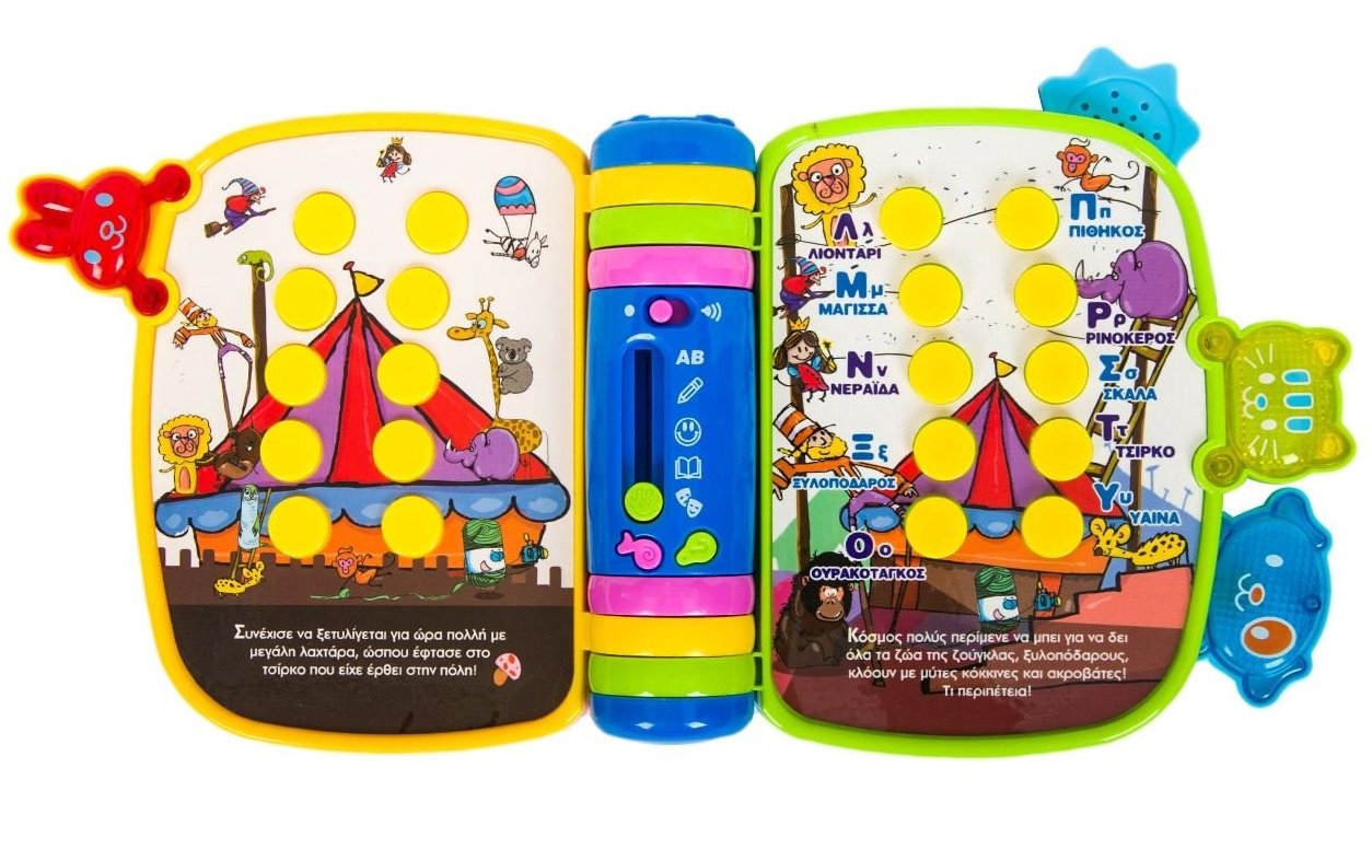 Тази музикална книжка я има в джъмбо. Има много различни функции, а от долното розово копче като го натиснеш свири "две калинки", "хей ръчички", "зайченцето бяло" и др