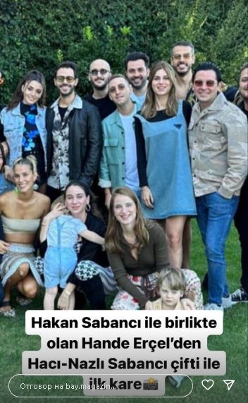 Упорито се твърди обаче, че все още Ханде не е приета от мама Арзу. На богатият плейбой му е позволено да показва любовницата си на сватбите на приятелите си, но не може да показва Ханде на важни семейни събития, като партито организирано от Арзу Сабанджъ за 40 дни от раждането на внучката, както и  сватбеното тържество на братовчед му, което се е състояло преди 3-4 дни. Ако е така, всичко е наистина много нелепо. Тук в Турция говорят, че той вече е имал афера с по-млада от Ханде. Твърди се, че е някаква рускиня. Ще видим какво ще се случи, но това което е сигурно е, че ако Ханде се съгласи да се появява само в определени часове, всичко е наистина мрачно. От достоверни източници се знае, че Ханде е изключена от програмата на мама Арзу. Поне засега... Какво ли още чака тази властна майка? Мина почти цяла година, а тя все още не е показала, че приема приятелката на сина си.