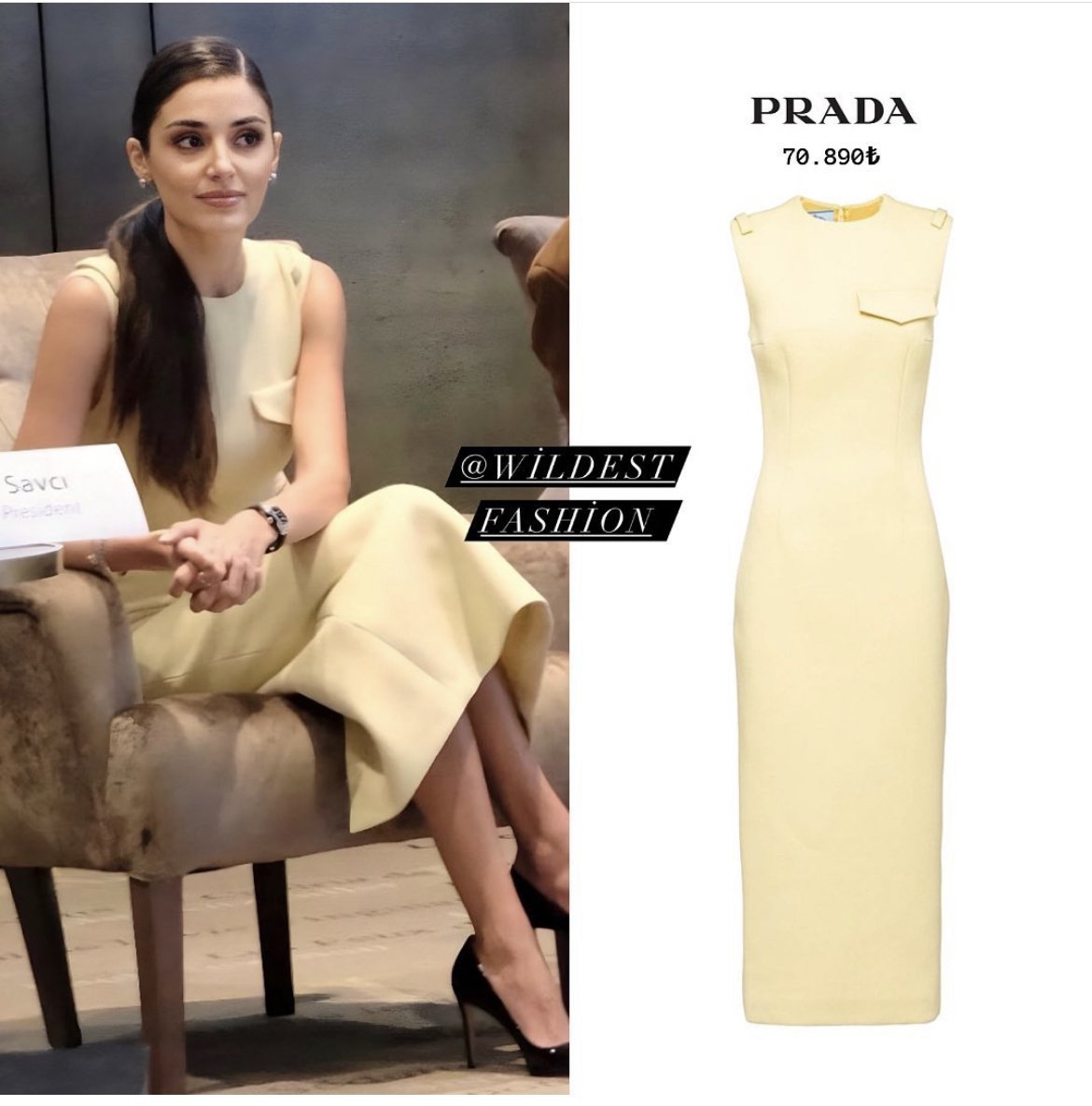Роклята на Ханде е предоставена от Прада ( продуктово позициониране ) Sunglasses