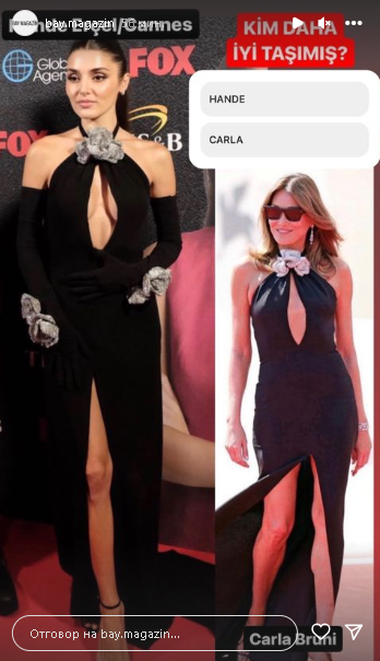 Днес четох, че и двата тоалета от съботието снощи са предоставени на Ханде - единият от Прада,  а черната рокля от Валентино.