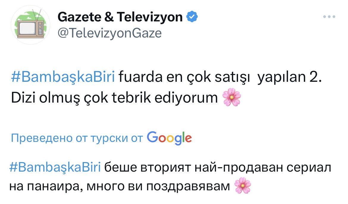 По повод снощната им визия - отлично си пасваше с характерите на Лейля, Кенан и “Друг човек”. Изглеждат ми обаче много изморени и  потиснати. Дано за второто да си внушавам заради последния рейтинг. То по-предният рейтинг сега ми изглежда цвете пред последния …
