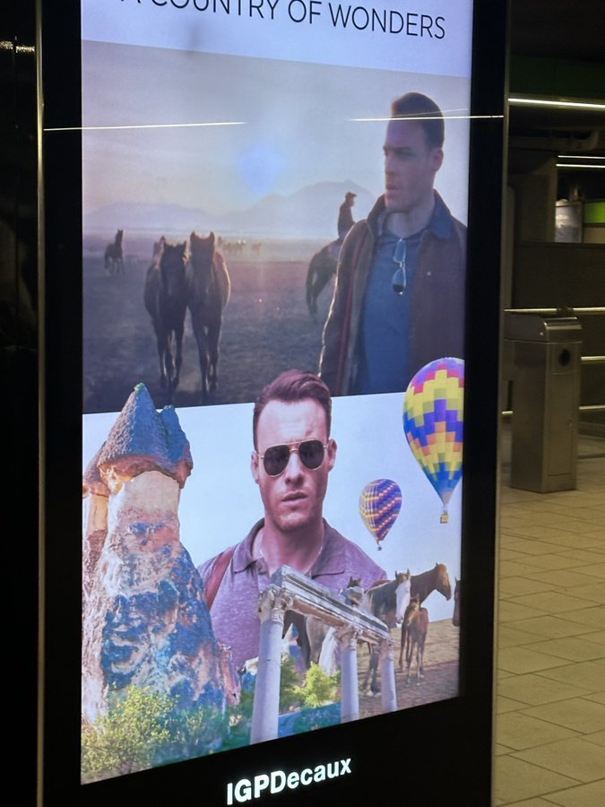 Реклама на Керем Бюрсин за Turkish Airlines на метростанция Милан.