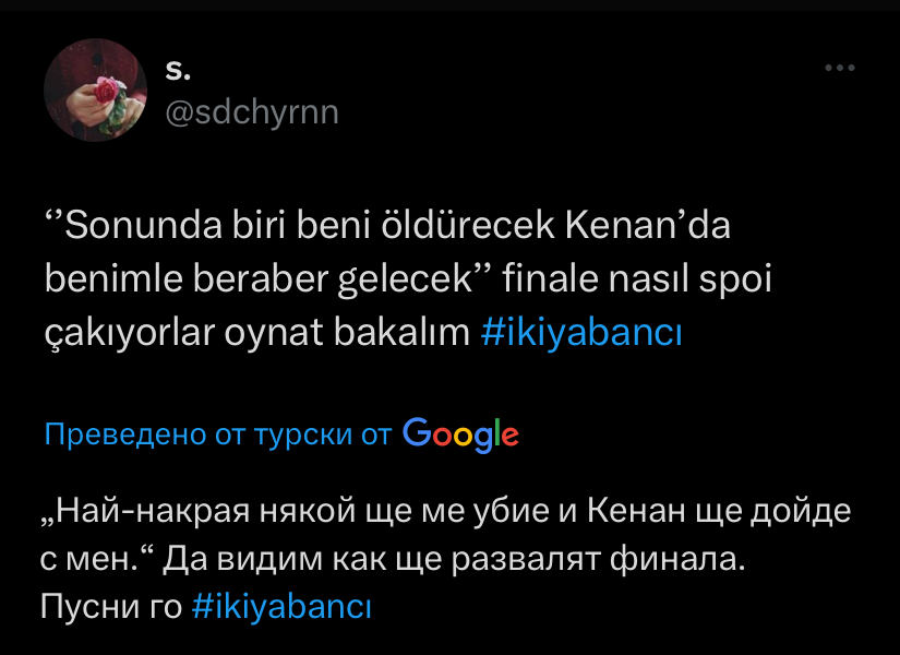 Не, Ели. Другаде е проблемът. Може би просто сюжета на сериала не е разбираем за масата турци. Може би малко забавиха действието, но пък то трябва да се обясни хубаво състоянието на Кенан. Нямаме добра реклама за епизодите. С любовни фрагмани, пуснати в 1 през нощта, не става. Може би не харесват Ханде и Бурак достатъчно или само нея. Не знам, избери си. Satisfied