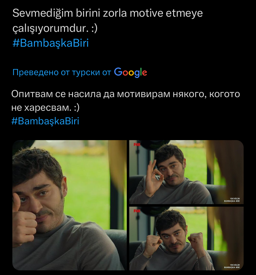 Smiley Smiley Smiley Smiley но Бурак е просто бомба в тези две роли. И очаквам днес да гръмне още повече. Обещаха ни, че едва сега всичко започва.