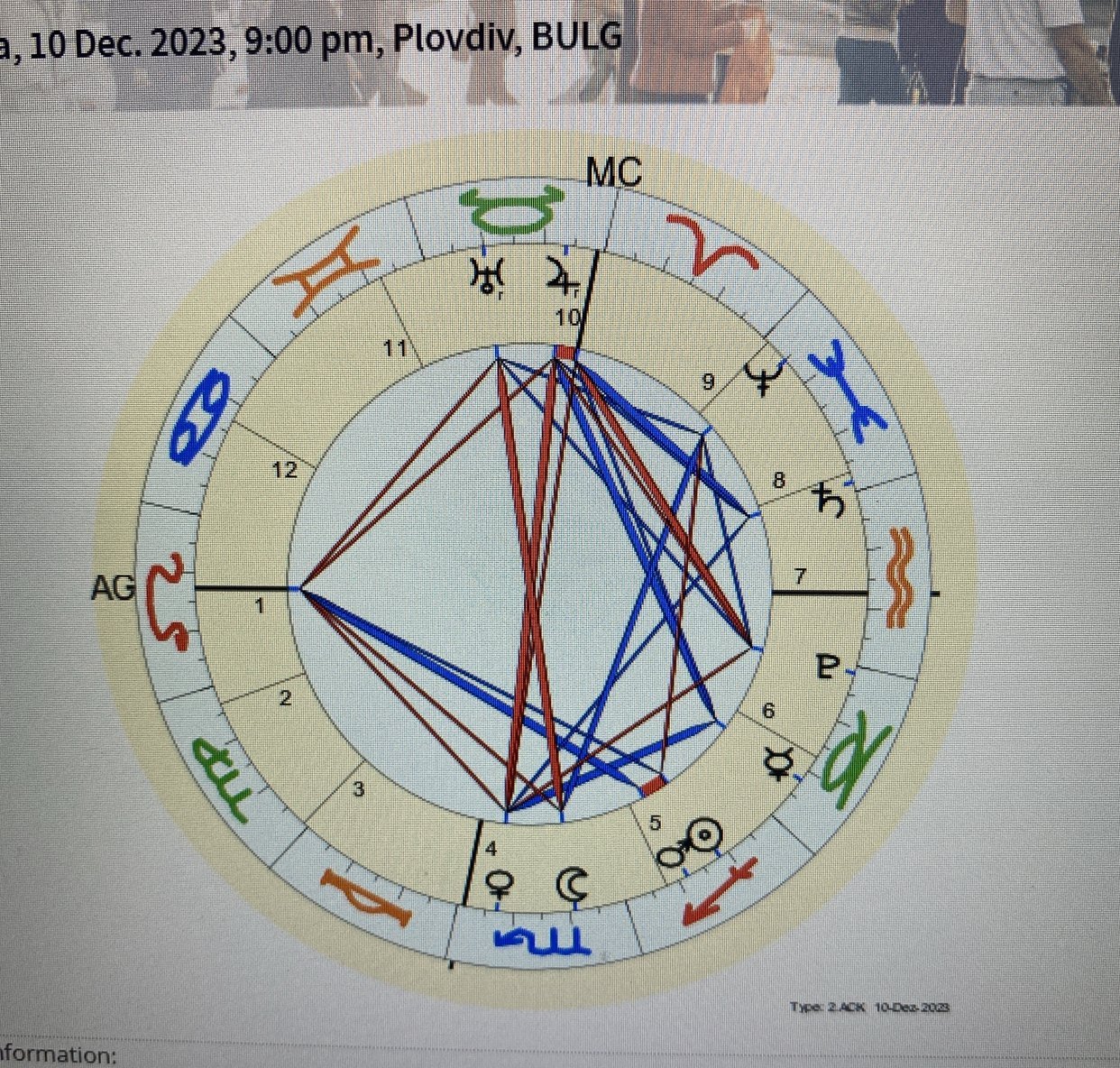 Когато постъпва в болница Луната е в 12ти дом и Венера във 2ри, когато решава да излезе Луната вече е в 1, а Венера е влязла в скорпион в 3 дом.