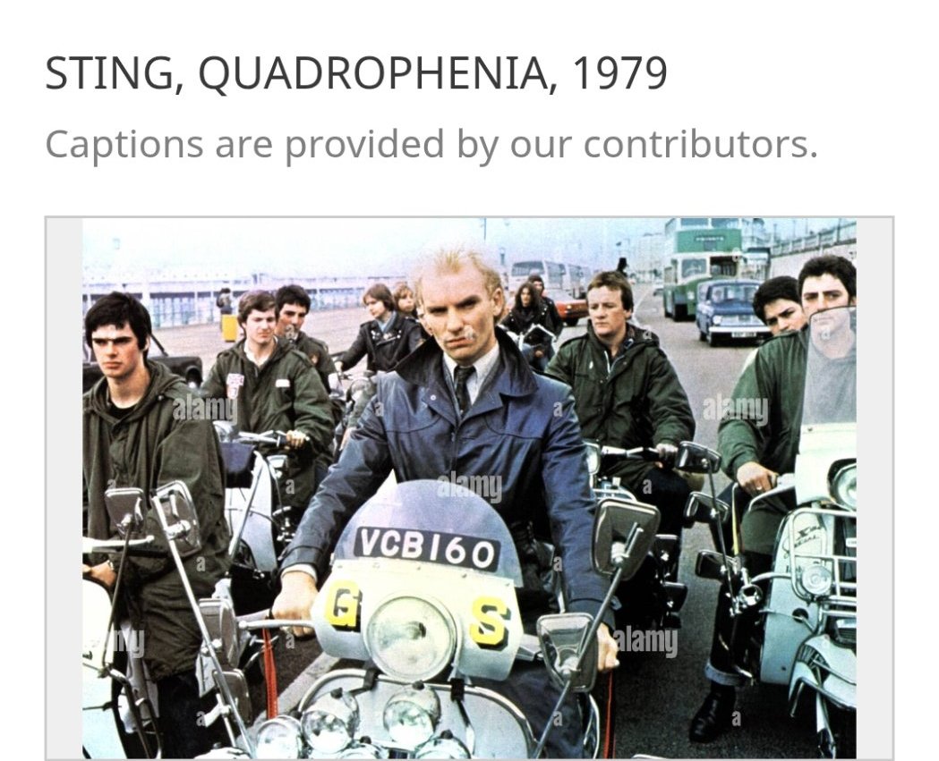 Снимката е от филма "Quadrophenia" от същата година, който гледах специално заради Стинг и Рей Уинстън - бяха от враждуващи банди - едните с мотоциклети, другите - с мотопеди. 🙂