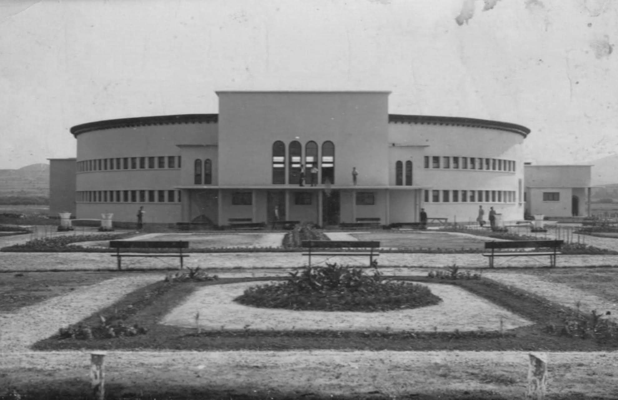 гр. Баня (Карловско), минералната баня, архитекти: Йордан Йорданов и Сава Овчаров (сътрудник: арх. Храбър Попов), конкурсен проект 1933 г., строителство: 1935-36 г.