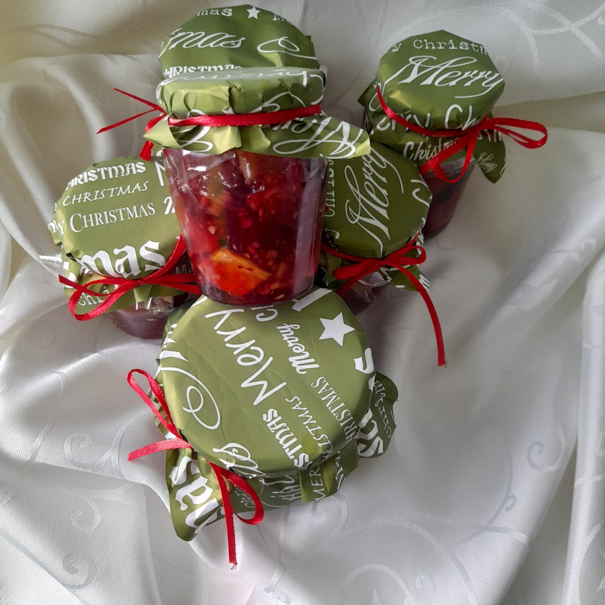 Както обещах, направих печеният чай. Стана бързо и е наистина много ароматен. Спазих точно указанията в рецептата,  но импровизирах малко с продуктите. Освен написаните в рецептата подправки, прибавих и парче пресен джинджифил нарязан на малки парченца , както и сушени кори от портокали и лимони, а плодовете ми бяха : портокали, зелени ябълки, замразени манго  и смес от летни дребни плодове - малини, вишни, касис и боровинки. За да не ми загори захарта, застлах дълбоката тавичка на фурната с целофаново фолио за печене.  Преди да сложа в бурканчетата, прибавих около 150мл. ром. Бурканчетета ми бяха за съжаление с различна големина.  Най-малките са около 150мл, другите около 200 - 250 мл. Мирише разкошно и макар,че не ям захар, опитах и е много, много вкусно.