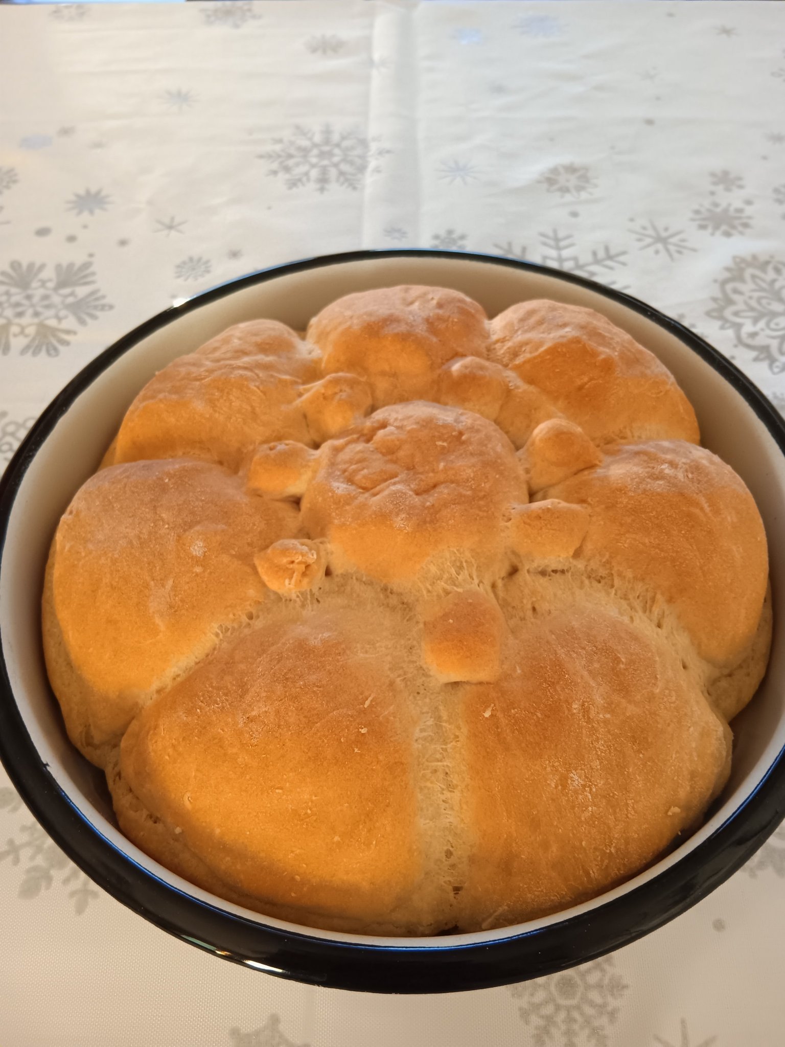 Питките тази година. Детето ги прави и спазва точно рецептата и насоките (за разлика от мен). Бяха чудни - пухкави, мекички.