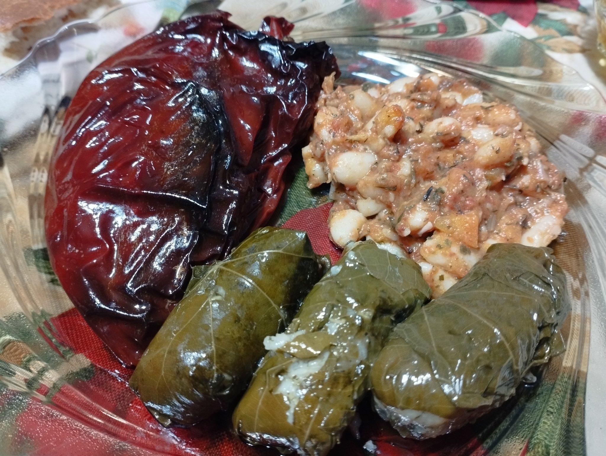 Моят боб, пълнен сух пипер с ориз от сестра ми и купешки сарми.