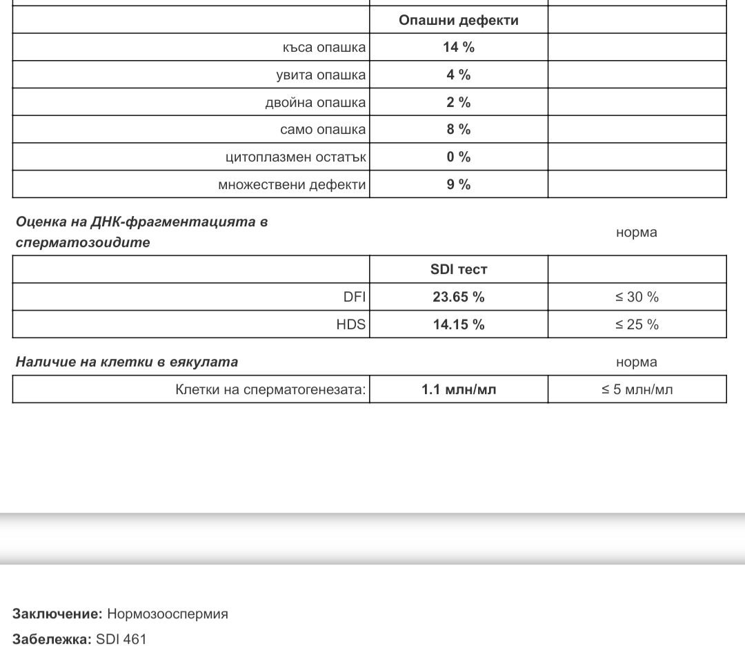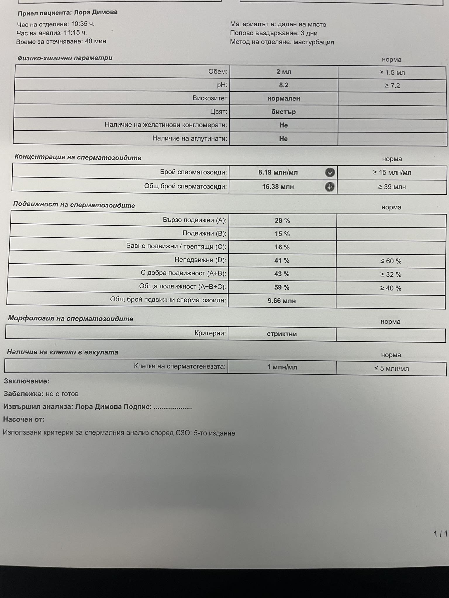 Обадете се в Надежда и попитайте. Спермограмата е идеална.