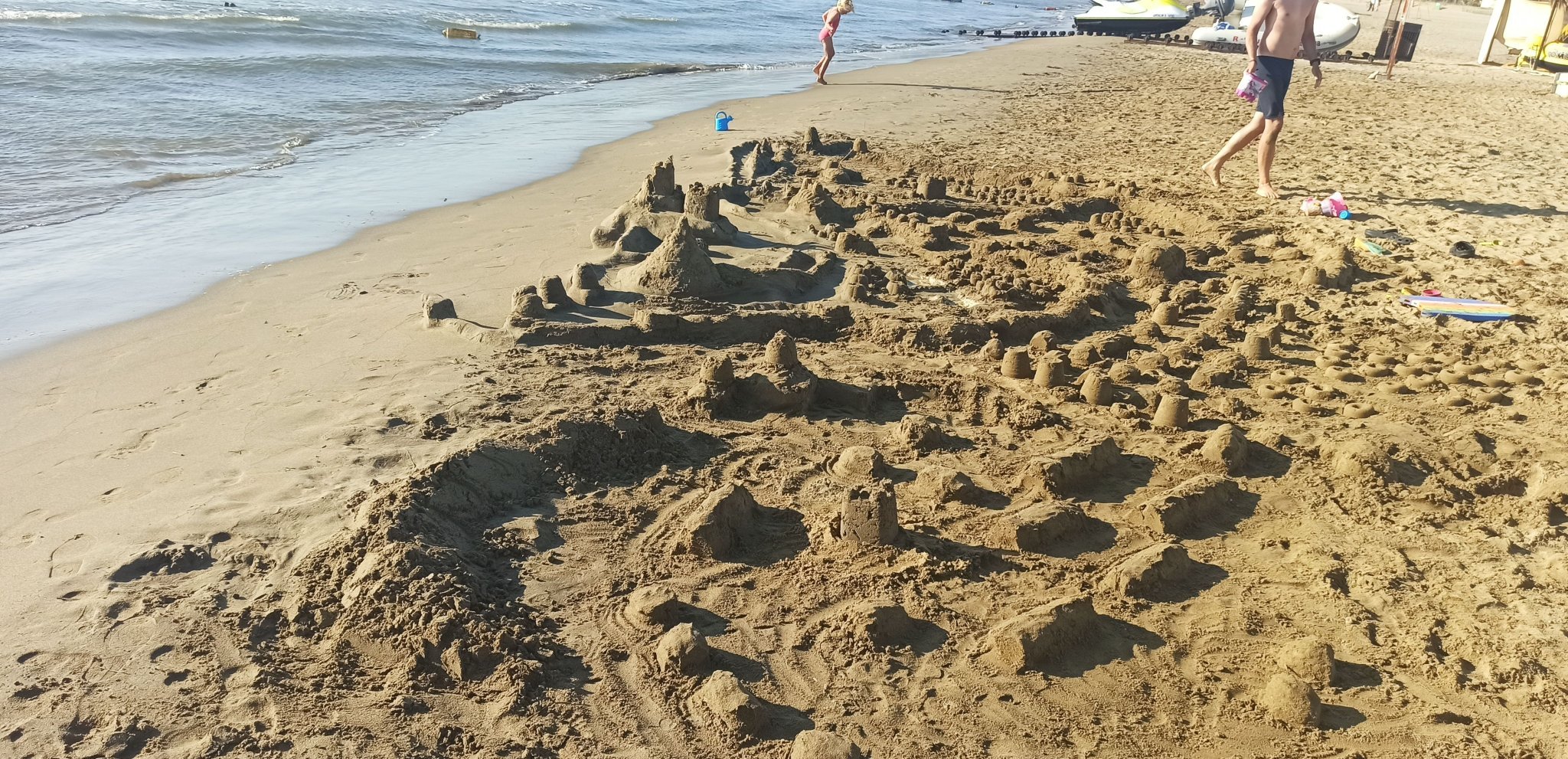 На сутринта отиваме на плаж. Стъпваме на плажа и какво да видим, много ситни камъчета. Е, що така? Къде е ситният златен пясък?