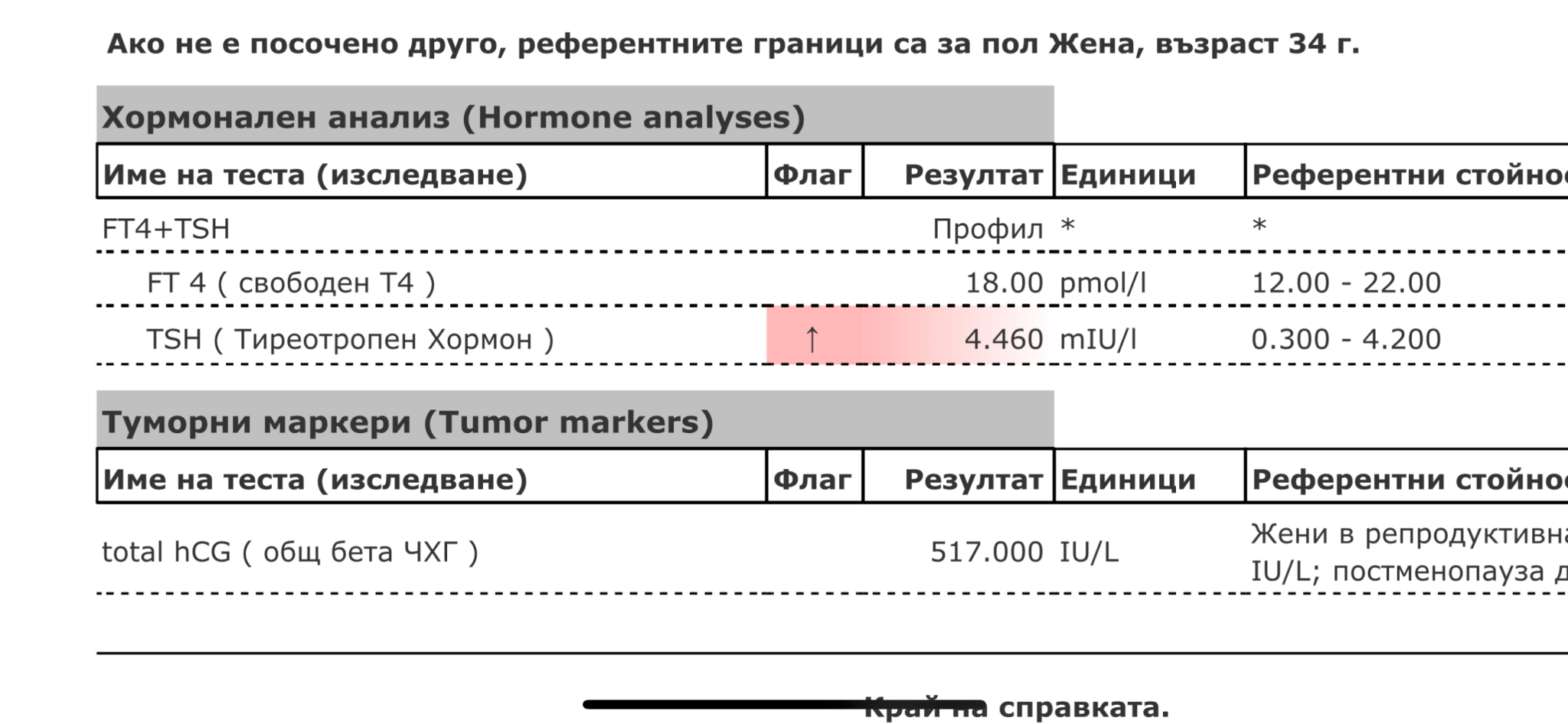Me, Myself & I, страхотен резултат! Стискам палци за здраво бебче на термин...пък може и близнаци ! ❤️❤️❤️ Т4 ти е супер, за това не се притеснявай за TSH. Като отидеш на преглед, ще ти кажат по каква схема да продължиш с Еутирокса.