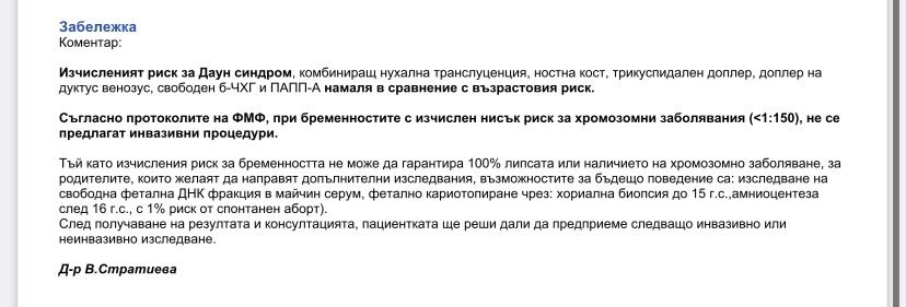 Над името на лекарката пише, ако се налага. На мен там ми пише поради висок риск от ПЕ ИУУР се препоръчва аспиринова терапия акард 150 нещо от този род пишеше.