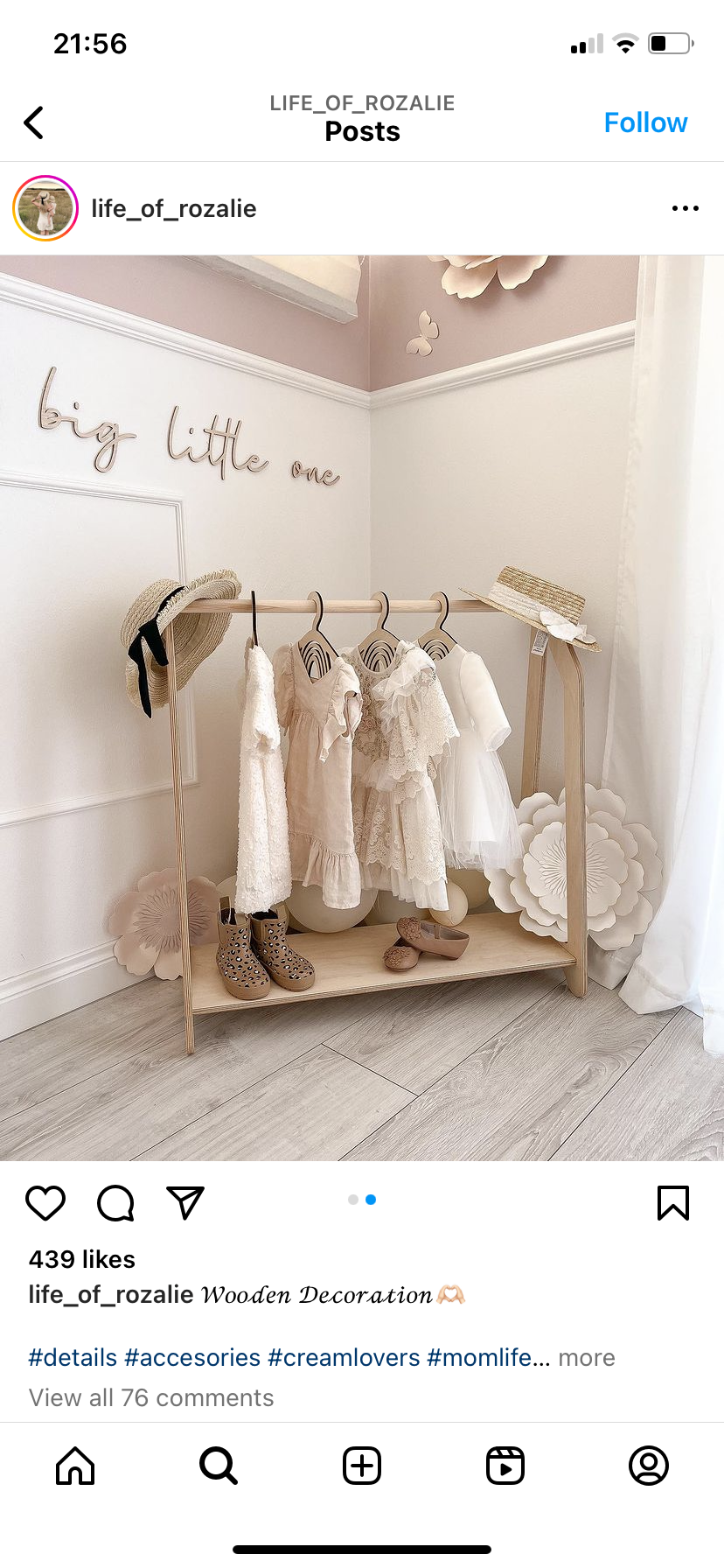 Аз първоначално имах големи планове за детската стая, но като гледам повечето бебенца си спят в спалнята на родителите доста време и ми се струва излишно. Детето ще порасне и тази стая се обезмисля, нито ще разбира, нито ще й се радва. Ще трябва пак да я ремонтираме, за да е по-подходяща и не толкова бебешка. Та сме решили един розов мокет, розови пердета и лампа и съответно легло със скрин. В нашата стая за гости тапетите са с розови мотиви, та бяхме решили само ако е момче да ги сменим. 😅 А ето такова нещо виждали ли сте някъде, много ми е сладко и искам да закача рокли на него.