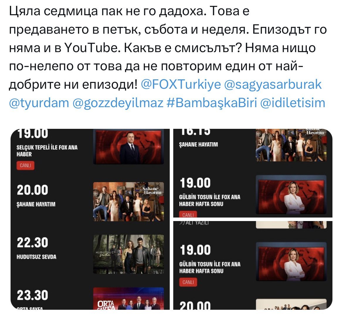 Да направят Бамбашкато "късен" сериал... Не виждам такава опция. Турските канали отдавна спряха да излъчват късни сериали, предвид факта че сериалите приключват към 12 часа тяхно време. С тия безсмислено дълги "озети" и още по-безсмислено дълги серии...