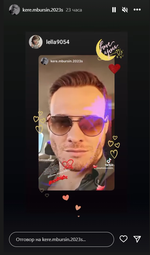 Това кой, как изразява своята любов не е най-важното. Макар че, не мога да приема един влюбен мъж да се държи, като някакъв "Цезар" и по никакъв начин да не показва своята любов към любимата си. Този мъж нито веднъж не изрази някакво възхищение от нейни снимки. Няма коментар, няма харесване. Чак пък такова пренебрежително отношение не мога да възприема. Какво демонстрира? В началото Ханде лайкваше негови снимки, а той нито веднъж не е лайкнал нейна. Качил е две снимки в своя профил, но ги е забутал най-отзад, все едно е като допълнение. Вместо да се гордее, че е с най-красивата жена, той седнал да се прави на горд. Ханде да го прегръща, тя да го ухажва, тя да го целува, а той стои като пън до нея. Толко е обидно, че чак не ми се коментира. Не мога да повярвам, че това е нашето момиче, което беше отрупано с любов и внимание.  Тя не е жена, която може да бъде пренебрегвана. Той за мен е един мъж, изградил самочувствие си благодарение на богатството натрупано от неговите родители. Външно не е нищо особено. Един рахитичен и безличен. Ако не е от фамилия Сабанджъ няма да има такова натискане за него.
