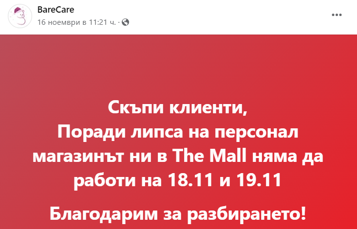 И моята от Barecare я няма, но не се учудвам, сигурно нямат достатъчно персонал да се справи с поръчките от ЧП.