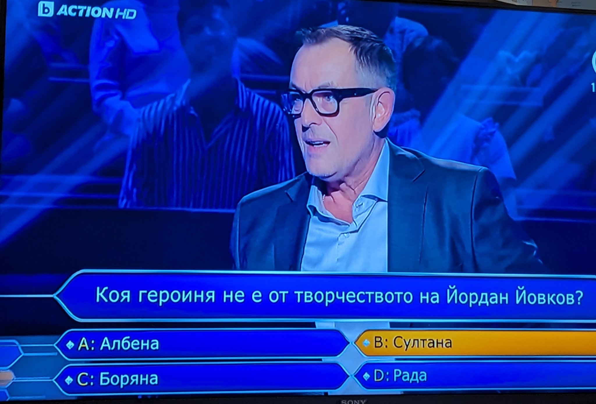 Почти не гледам СБ вече, но го хванах на лесните въпроси как пуфти и възкликва с Еврика... /Този за Йовков щях да изгоря лично/