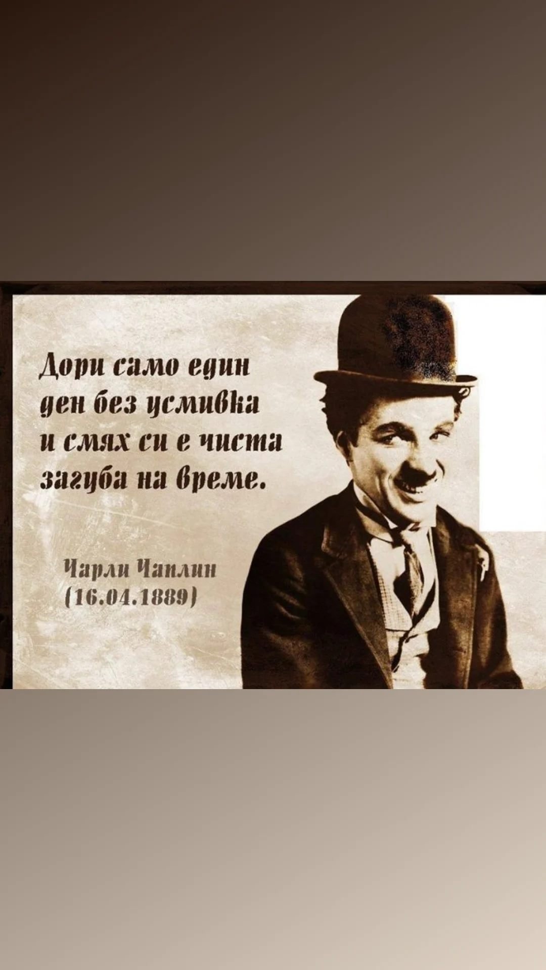 Нека е с усмивка, защото си припомних една прекрасна мисъл на Ч.Чаплин: