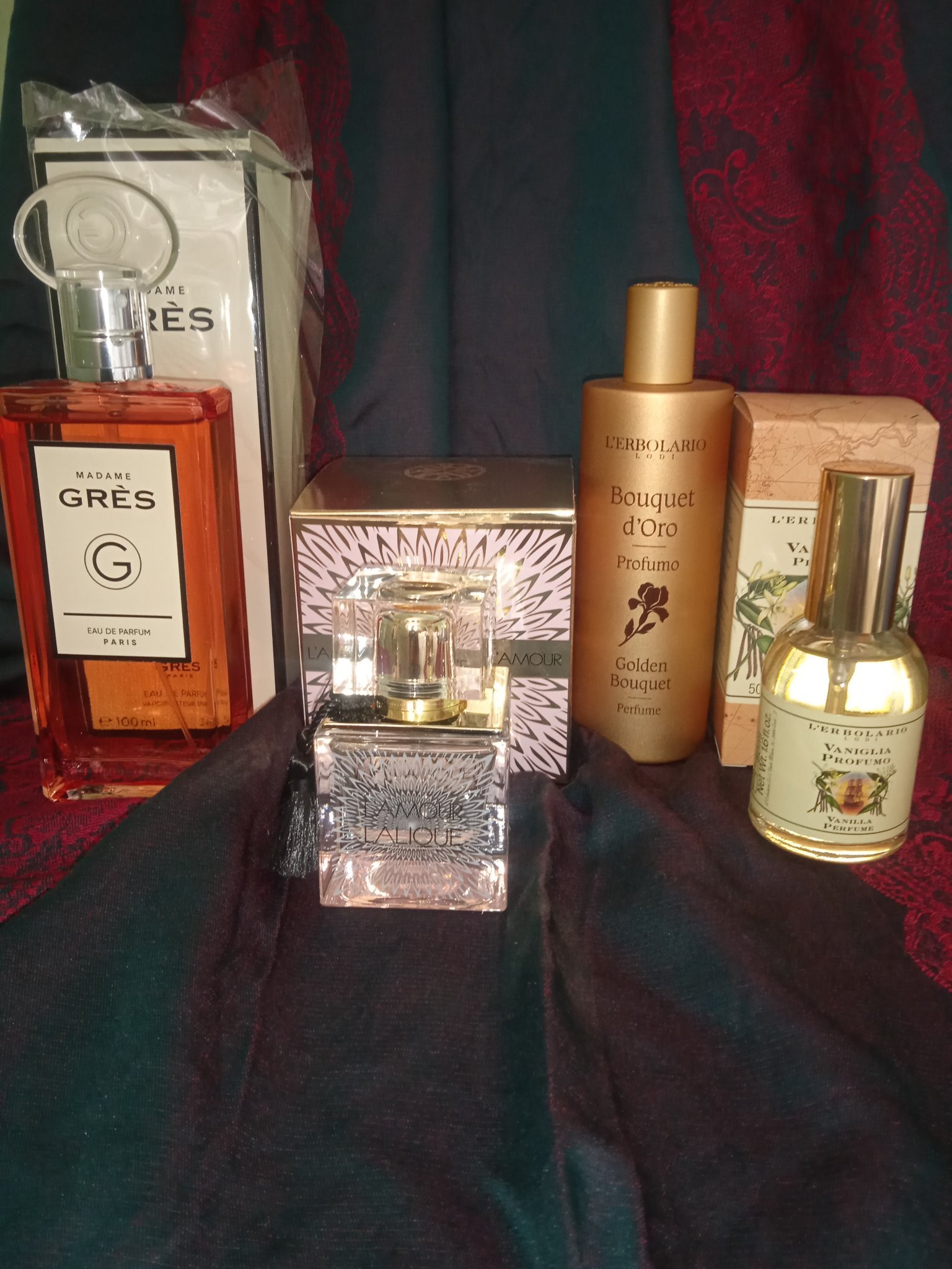 Lancome Climat; Chanel No 5 L'Eau; Loewe Aura Floral Loewe; Mar de Coral; Theodoros Kalotinis Lemon tart;  Plumeria, Symposium; Histories de Parfums 1875 Carmen bizet Absolu и много други. Ще разгледам всяко предложение