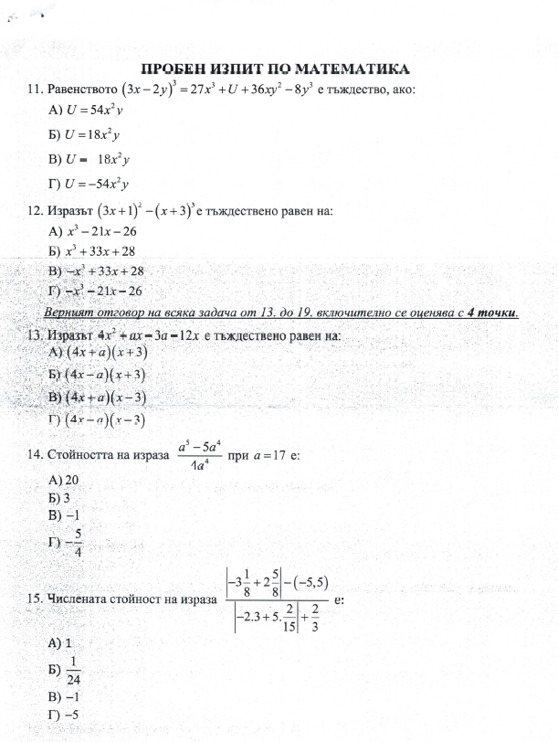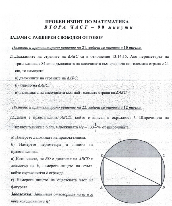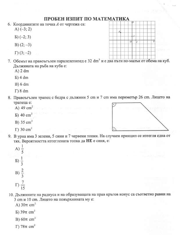 Какви са допълнителните изисквания за реалните изпити при попълването на отговори на пробните изпити?