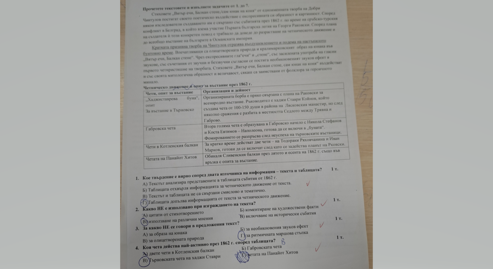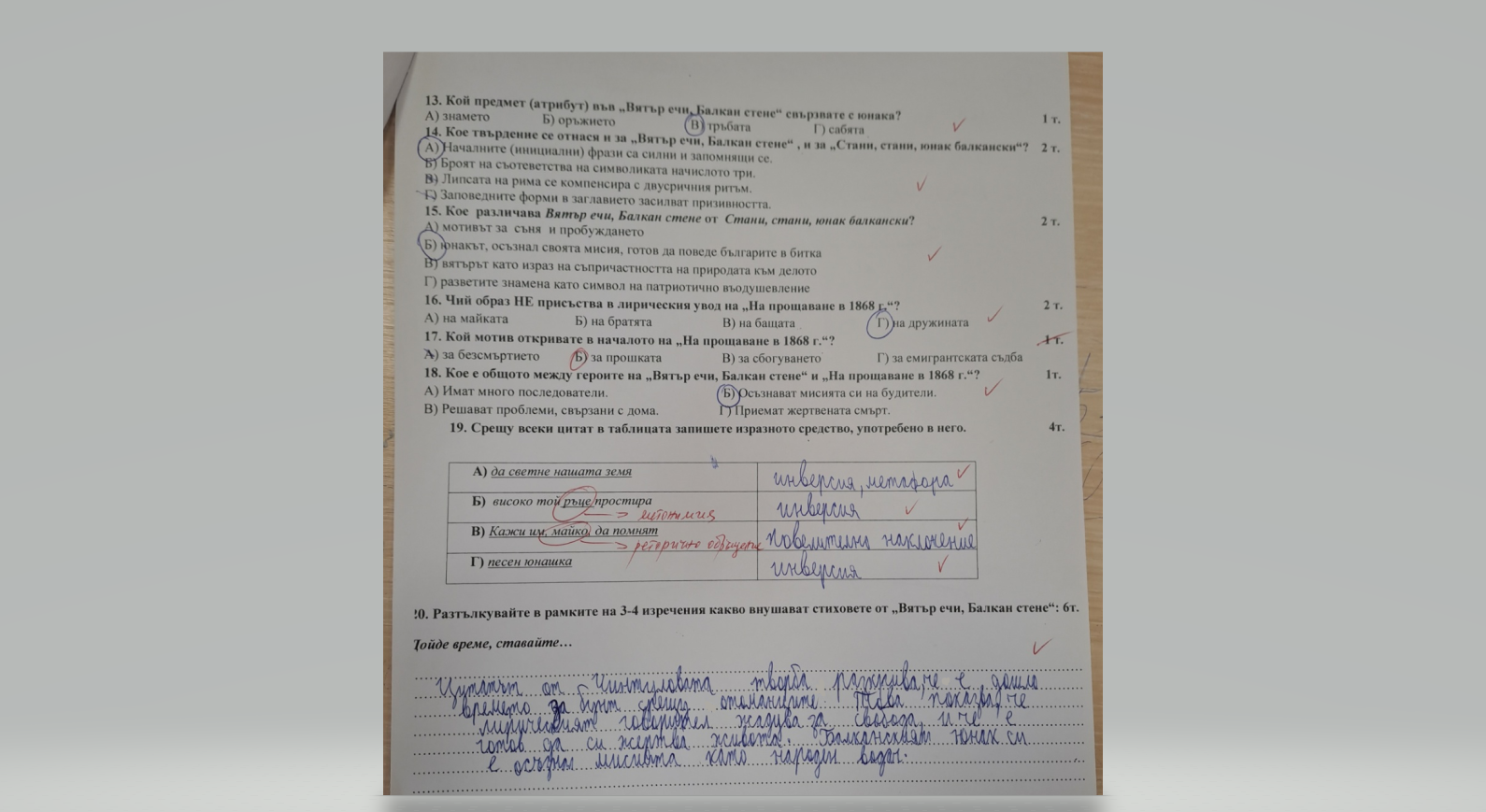 Качеството е ужасно, за което се извинявам, но бях обещала да пусна снимки от контролното ни по БЕЛ по формата на НВО. Позачистих текста за редакция само, доколкото можах.