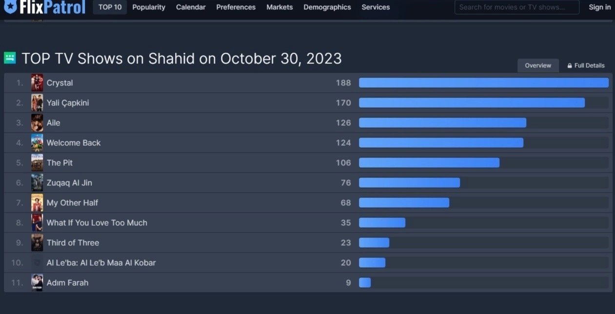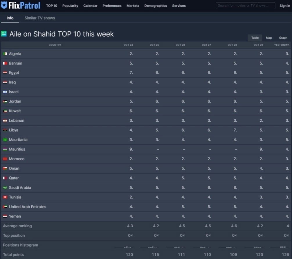 Сериалът "Семейство” се изкачи на 3-то място сред всички сериали на водещата арабска дигитална платформа Шахид, влизайки в списъка ТОП 10 в 18 държави.