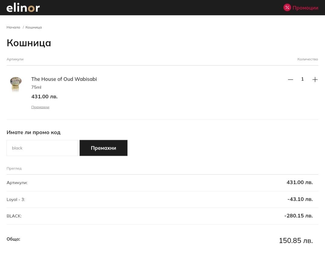 Кодът BLACK, който се начислява  автоматично и дава 40% отстъпка е само за някои парфюми и там можете да добавите welcome без регистрация или да си влезете в акаунта и да ползвате лоялната програма.