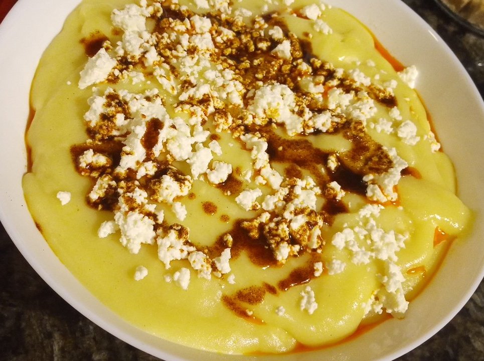 вече имам купа най-невероятното царевично нишесте със сирене, масло и препържено пиперче.
