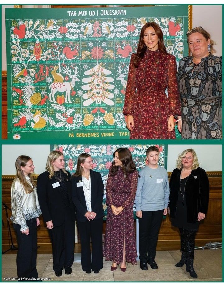 Мери представя новата пощенска коледна марка. Тя е председател на фондацията. Марката е с благотворителна цел. Още една от хубавите  инциативи за деца в неравностойно положение в които се включва.