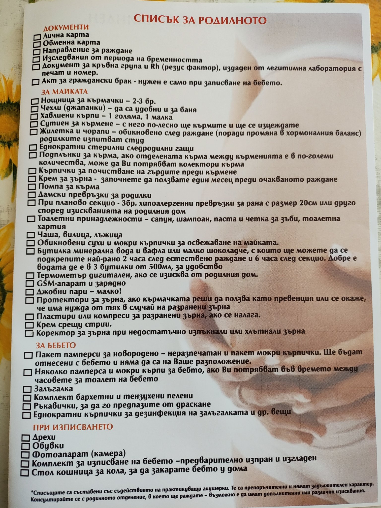 Моля да ми споделите какво е нужно за мен и бебето по време на престоя в болница. Другия месец ще раждам и искам да си оправя багажа, но никъде в сайта не намирам списък. Благодаря предварително!