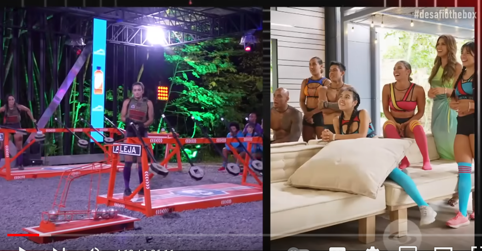 Да разнообразим с кадри от колумбийското Десафио 2023. Имат огромен телевизор и участниците могат да гледат другите битки.