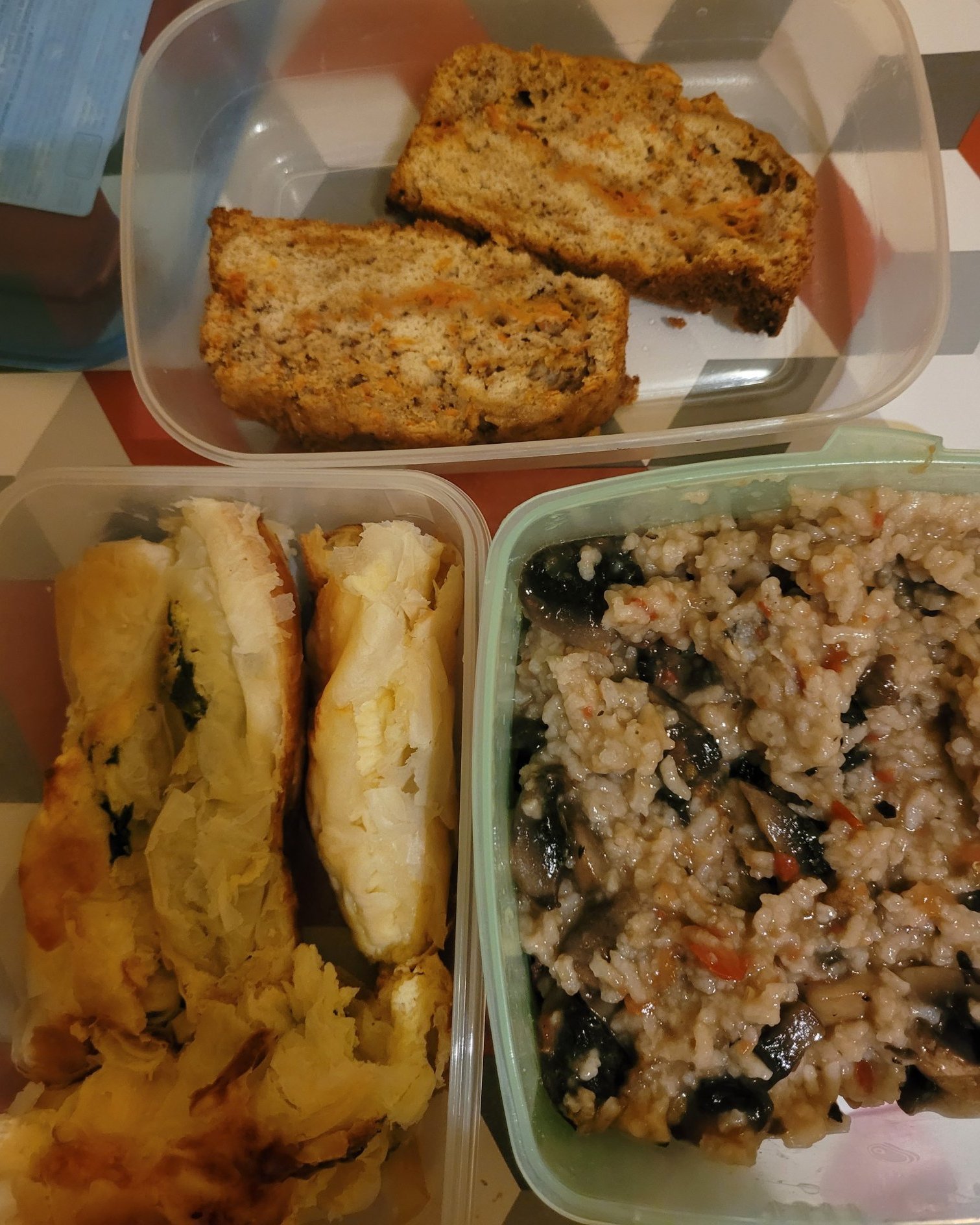 За днес ориз с гъби,баница със спанак и морковен кекс
