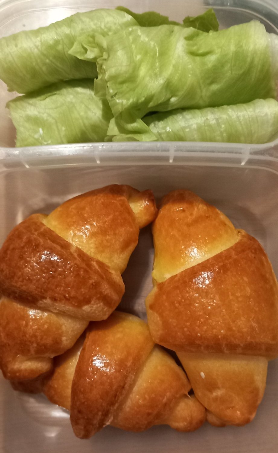 За закуска рогчета и маруля с крем сирене. ( Набърках доволна доза от рогчетата сега ще замразя да пробвам).