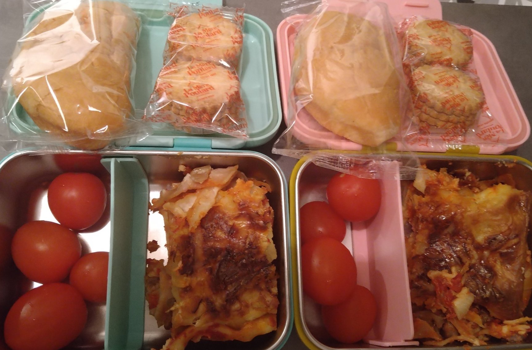 - Някои от предложените ястия за закуска и обяд за вкъщи включват картофена заппеканка със сметана, тортила с омлет, печено кюфте, ребра без кост, пържени картофи, шницел, пица , макарони със сирене , кюфтета с бял сос, варени картофи и печени картофи на фурна. Други опции включват дебарцина, хляб и гарнитури като кетчуп, кисели краставички, манго, киви, круши и ябълки.