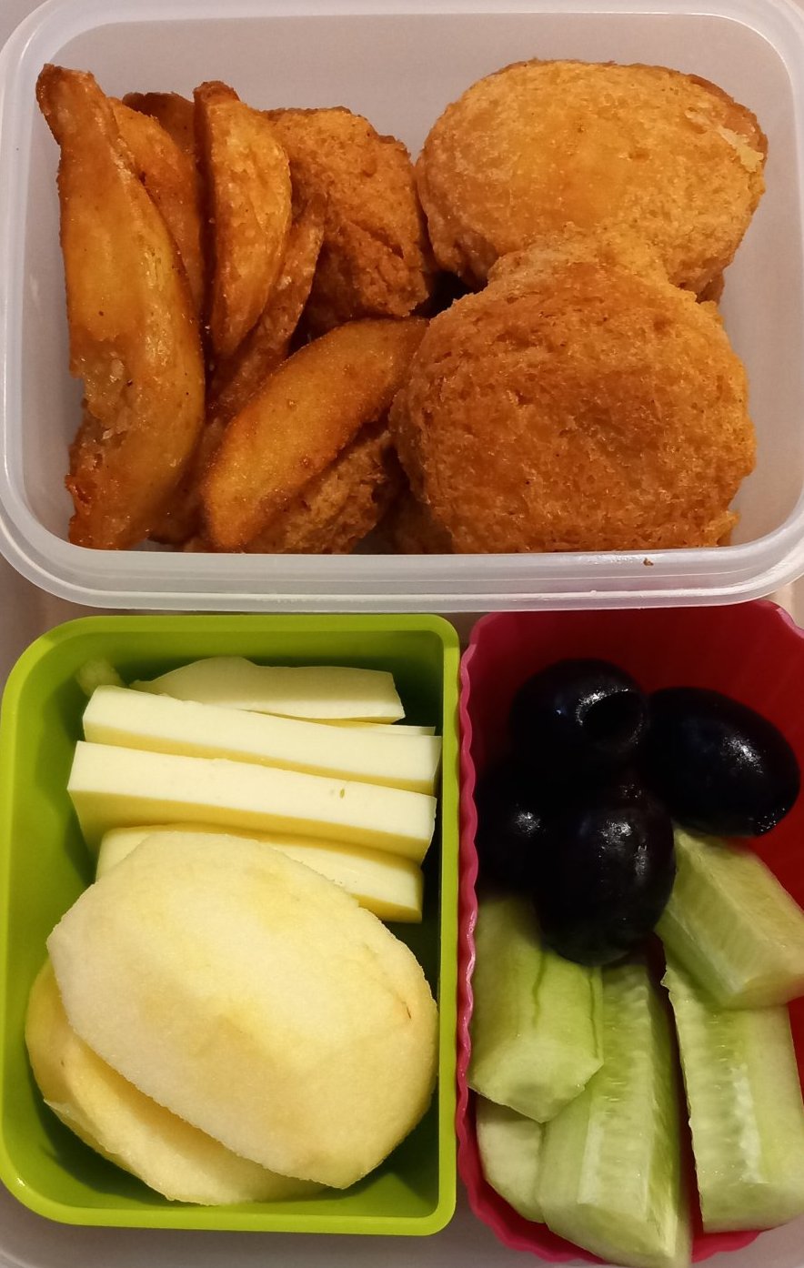 - Някои от предложените ястия за закуска и обяд за вкъщи включват картофена заппеканка със сметана, тортила с омлет, печено кюфте, ребра без кост, пържени картофи, шницел, пица , макарони със сирене , кюфтета с бял сос, варени картофи и печени картофи на фурна. Други опции включват дебарцина, хляб и гарнитури като кетчуп, кисели краставички, манго, киви, круши и ябълки.