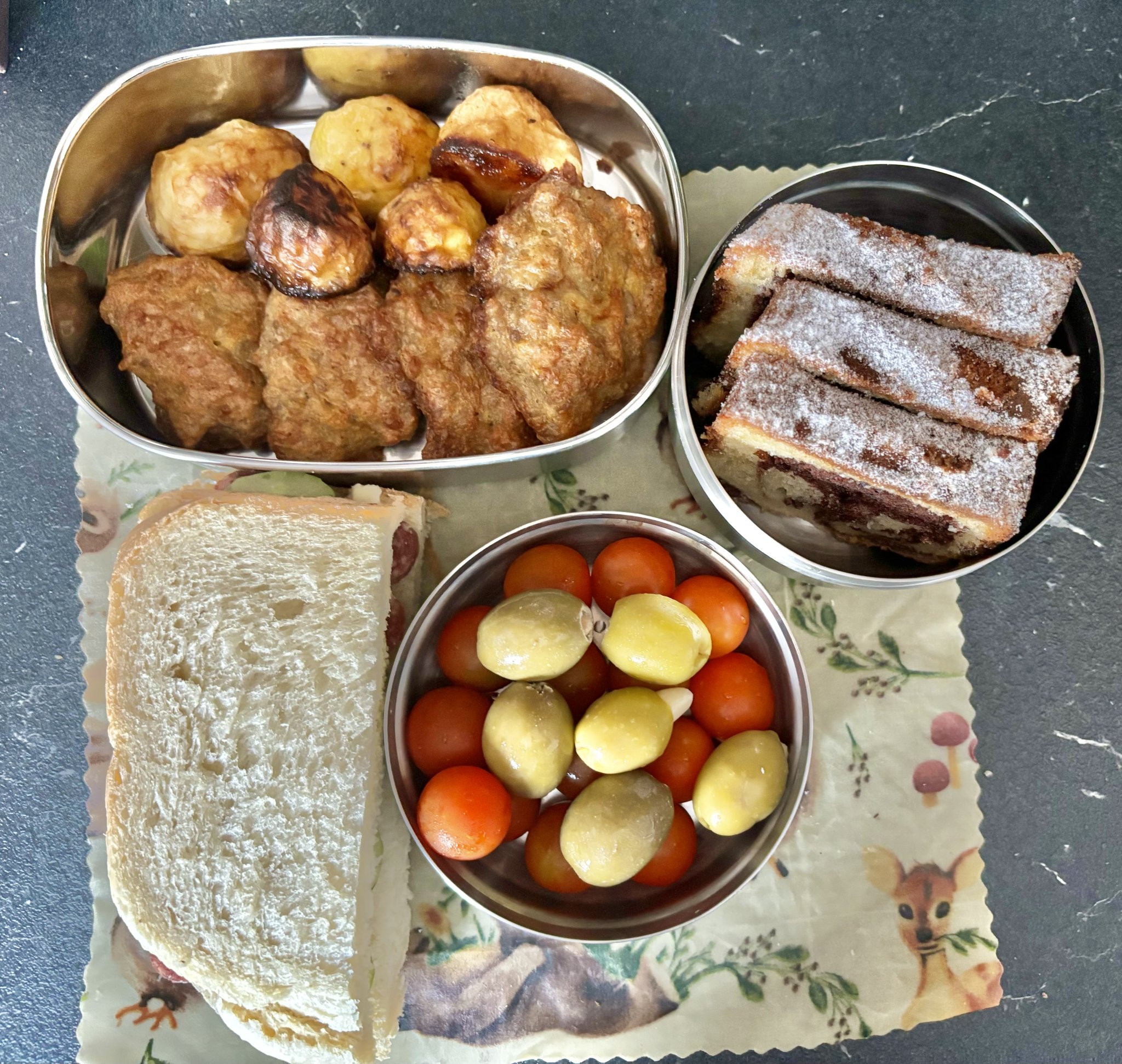 - Някои от предложените ястия за закуска и обяд за вкъщи включват картофена заппеканка със сметана, тортила с омлет, печено кюфте, ребра без кост, пържени картофи, шницел, пица , макарони със сирене , кюфтета с бял сос, варени картофи и печени картофи на фурна. Други опции включват дебарцина, хляб и гарнитури като кетчуп, кисели краставички, манго, киви, круши и ябълки.