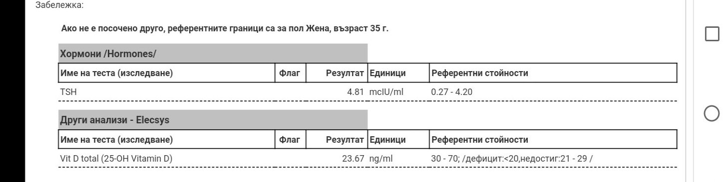 Утре ще ходя при ЛЛ да ми види изследванията, надявам се този път да ме вземе на сериозно, защото мисля, че изследванията не са добре. Затова пиша и тук, да чуя и вашето мнение, защото форуми и разни теми са ми помогнали много повече от лекари  през годините, за съжаление.