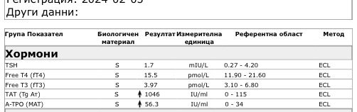 Здравейте, с Хашимото съм и приемам еутирокс 50 мг. Днес си пуснах изследване и не знам какво да мисля. Защо при това идеално TSH, FТ3 и FT4 са толкова ниски? Моля кажете дозата малка ли ми е? И как да си оправя конверсията на FT4 в FT3?