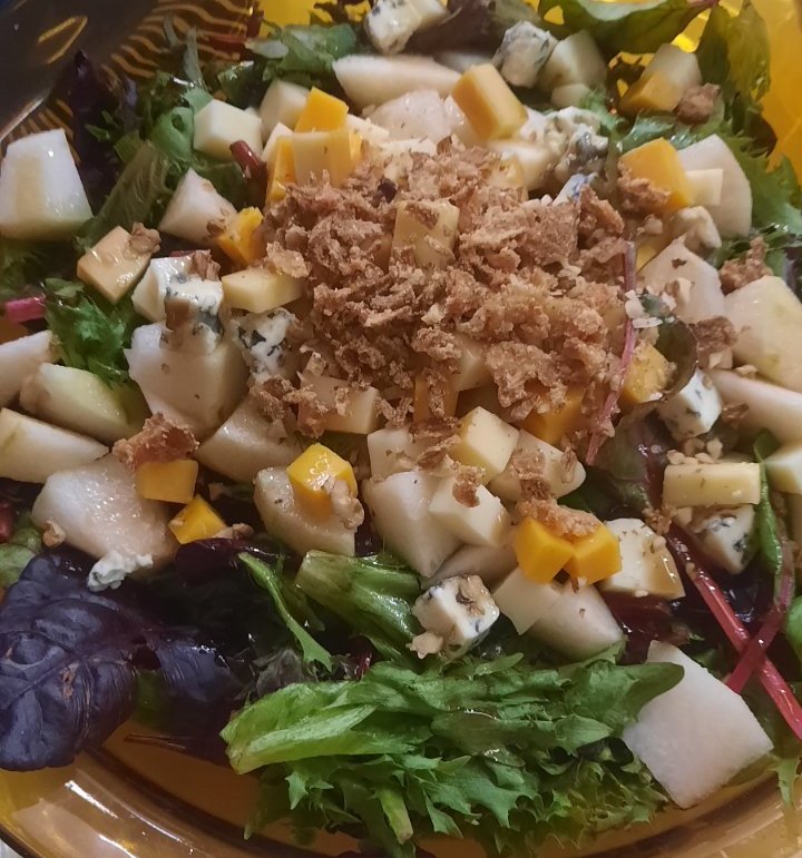 Тая вечер правих салата с рукола, круши и запечени орехи, но не успях да снимам.