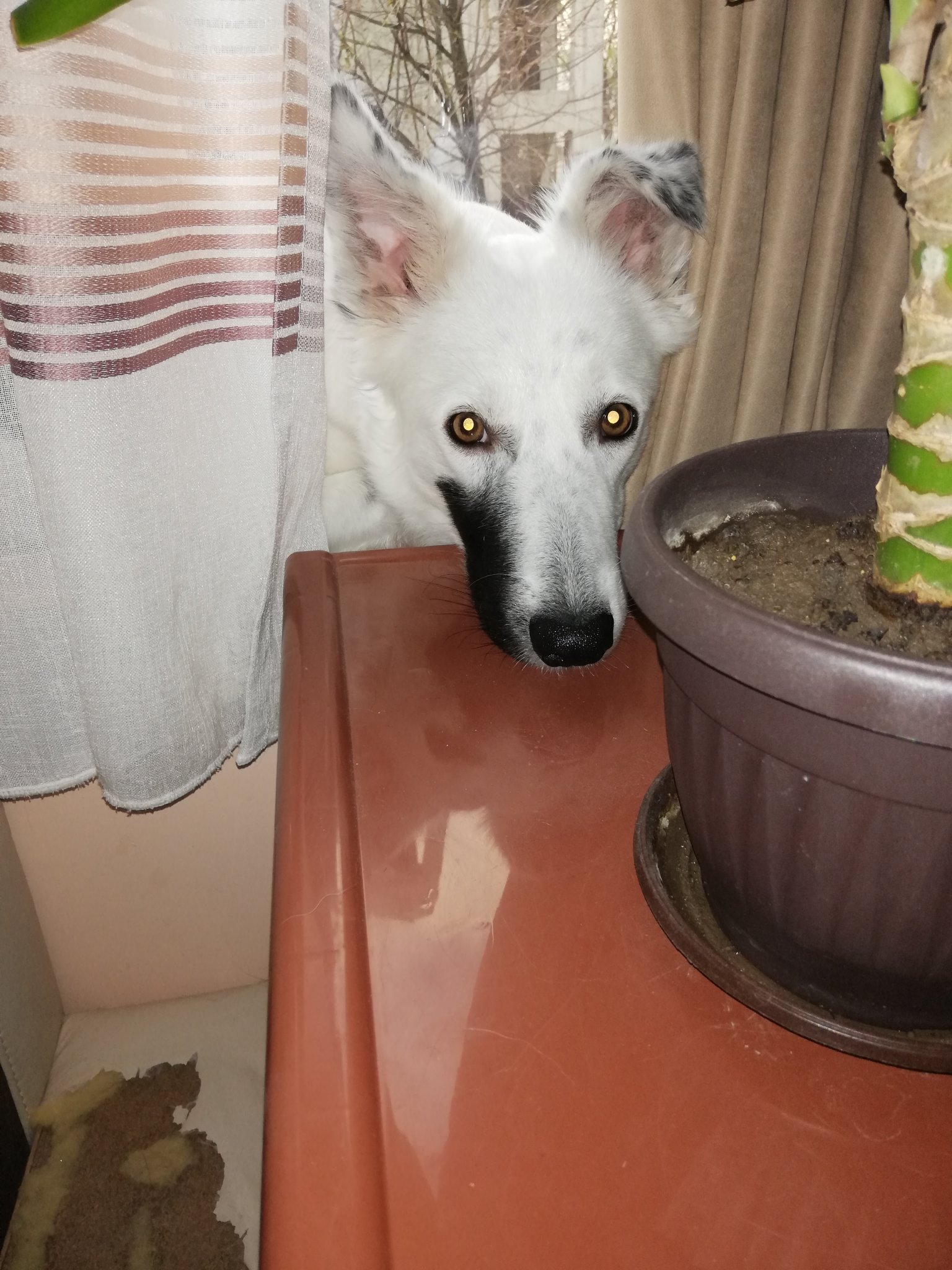 - тук още се крие под масата и е кльощичка