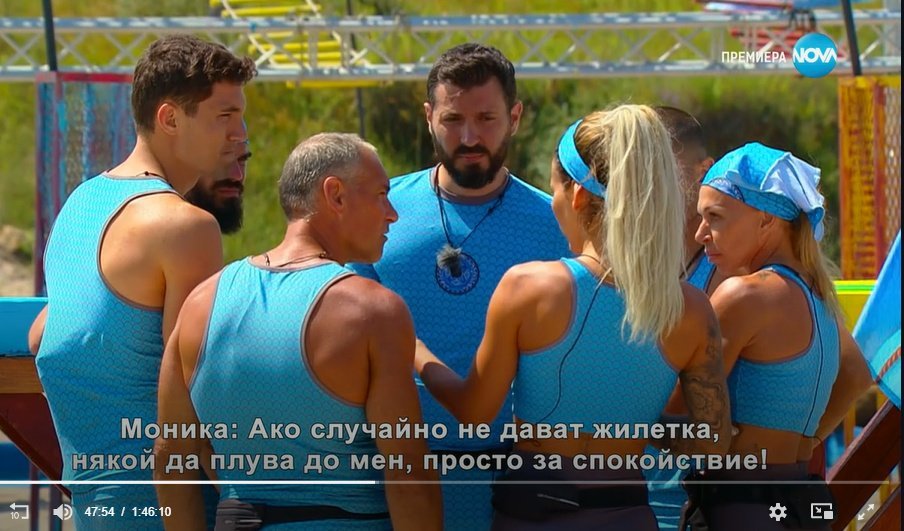 Червените започнаха, когато сините бяха на финала. Рълев се ядосва на Благо, че е по-бавен. Паднаха сините.