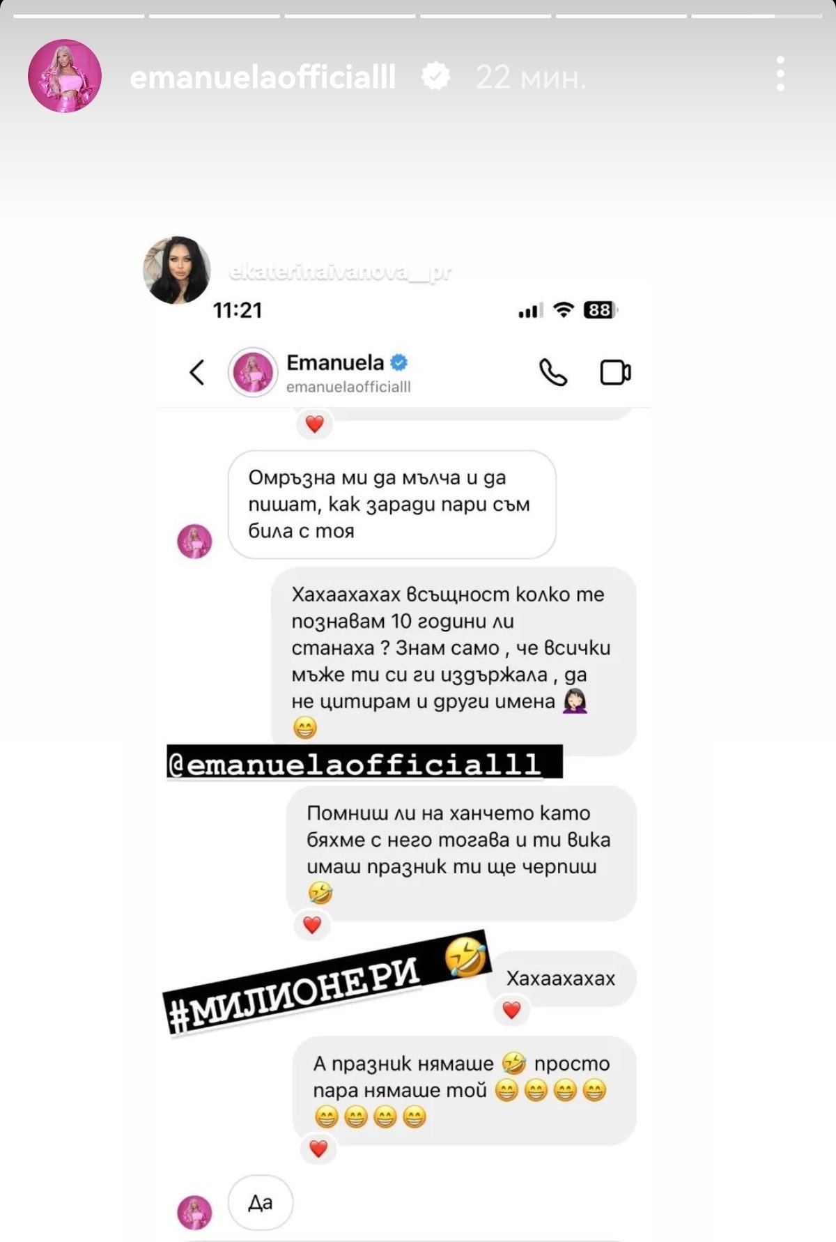С родители като Петко Николов ( бивш председател на КЗК)  и Мариета Николова  ( известен столичен нотариус) , нали никой не мисли , че няма жълти стотинки да почерпи Емануела? Явно е деградирал последните години и на нея й е писнало, но да бъде 6 години с такъв прошляк пак не върви нещо. Всичките карата по протокол-и Златка издържала Благо, и Джулиана Гани онзи бившия, всички са много онеправдани като не получават за подаръци нови джипове от 200 к нагоре.