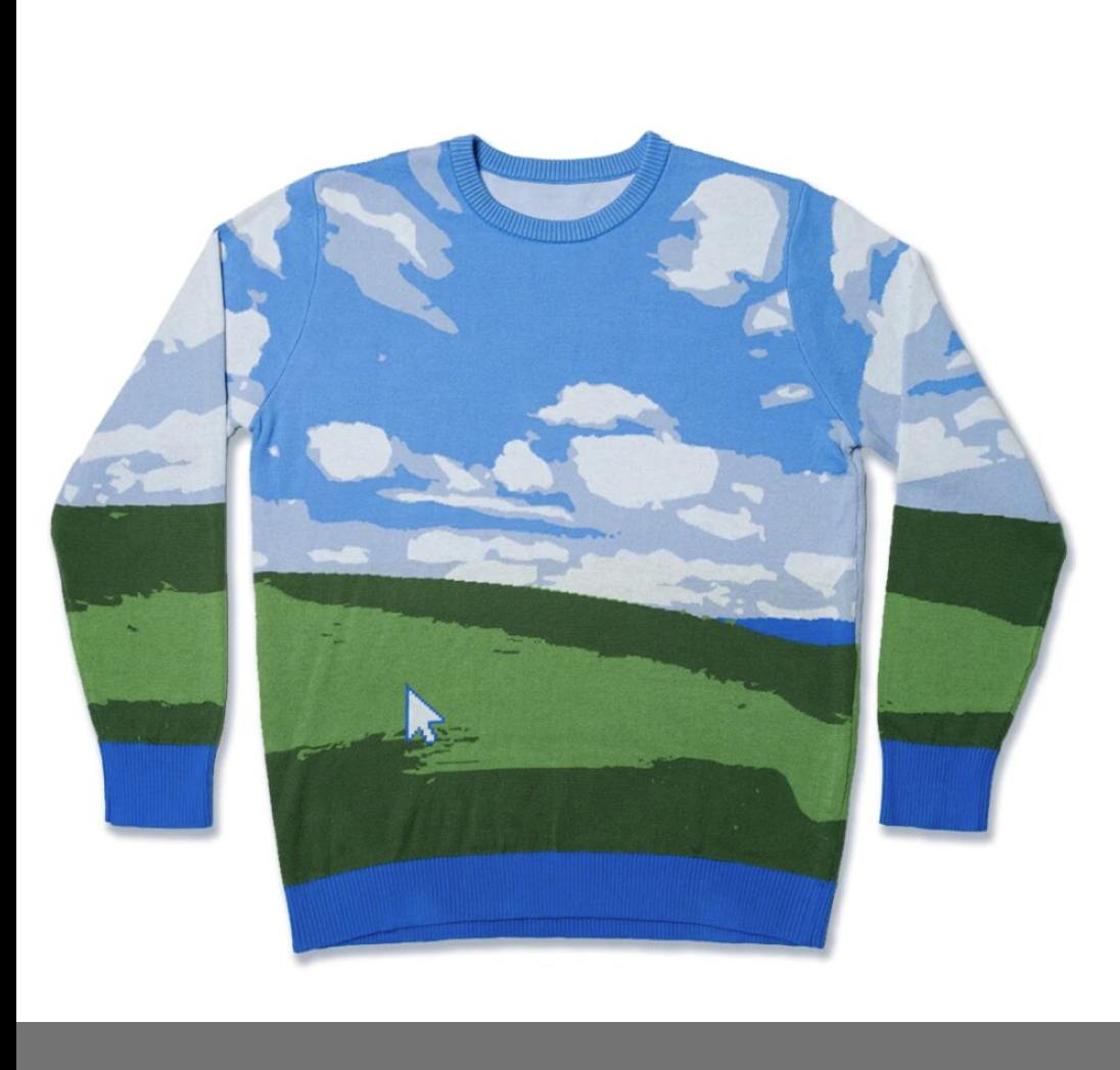 После стана още по-зле,защото видях пуловера на Microsoft за 2023 с най-разпознаваеми тапет или тапета от Windows XP. Joy