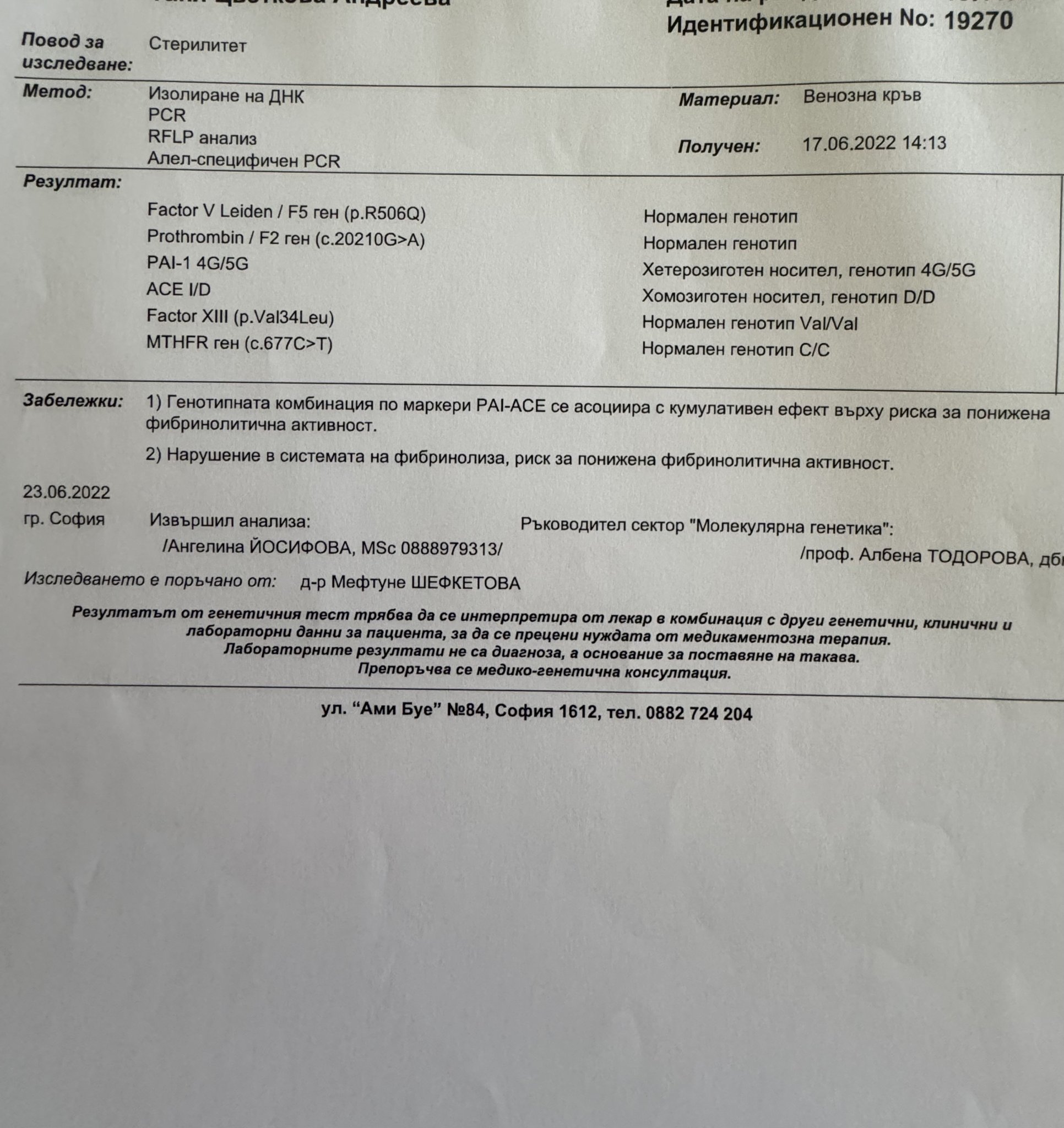 Говорих с лекаря ми, и няколко пъти получавам отговор, че няма какво да го мисля. След като генетик ми каза пак да покажа, защото си трябва консултация с АГ, аз ги показах и получих друг отговор - при следващ трансфер ще приемаш медикаменти ( а уж нищо не беше предните пъти ...). И сега се чудя има ли проблем, няма ли? Отделно ходих на консултация при доц Русев и той не коментира нищо, освен дали има хора е рода ми с инсулти.
