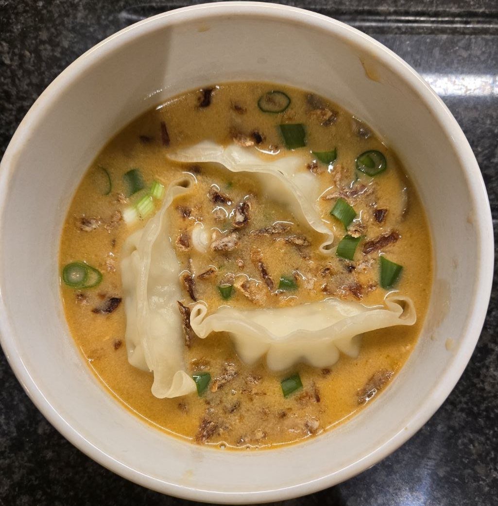 супа тай кокосово-червено къри с гьоза/манту/дъмплинги