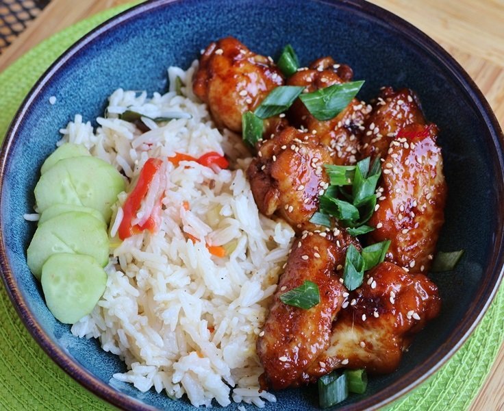 Медени пилешки крилца и ориз