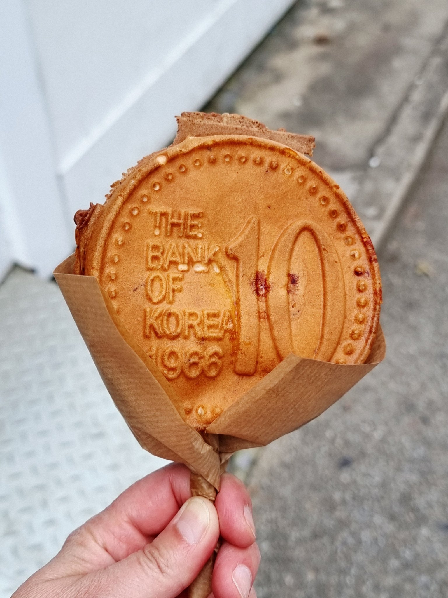- 10-won bread - вафлено тесто с пълнеж от сирене, което се разтапя при печенето и изпечено във форма със щампа на стара монета от 10 вона
